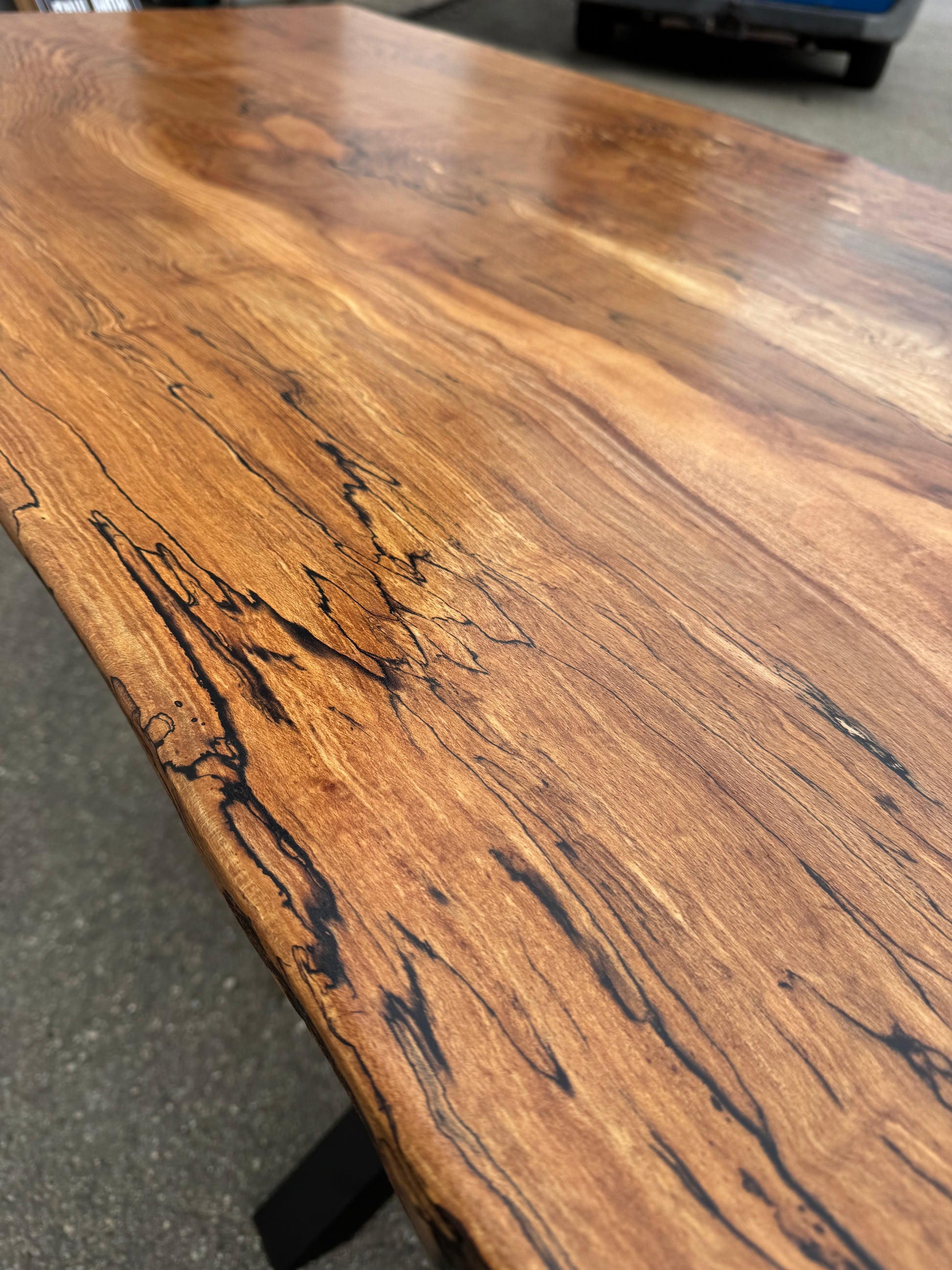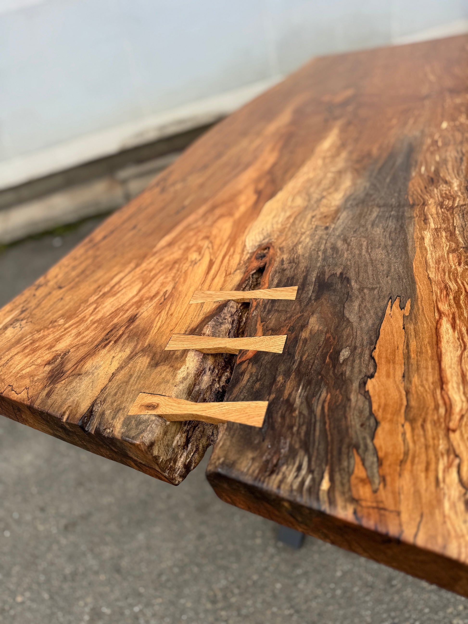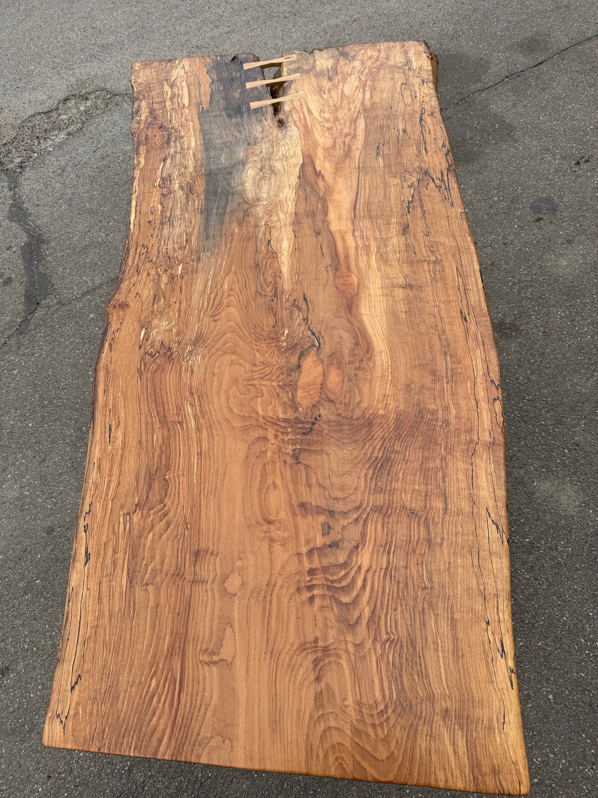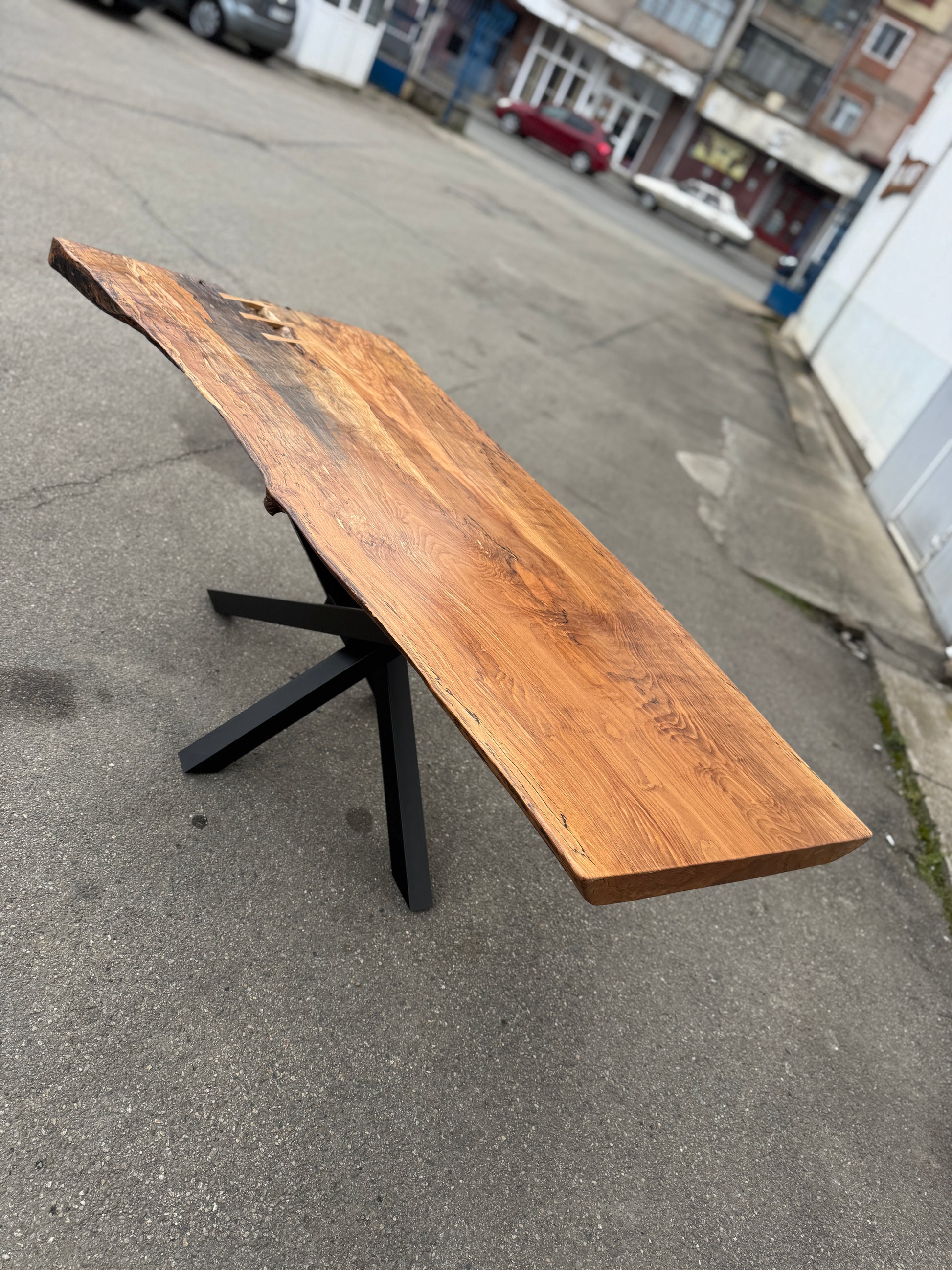 Masa este din o singura bucata din lemn de Fag , un model deosebit cu urme de sufocare si culori spectaculoase .