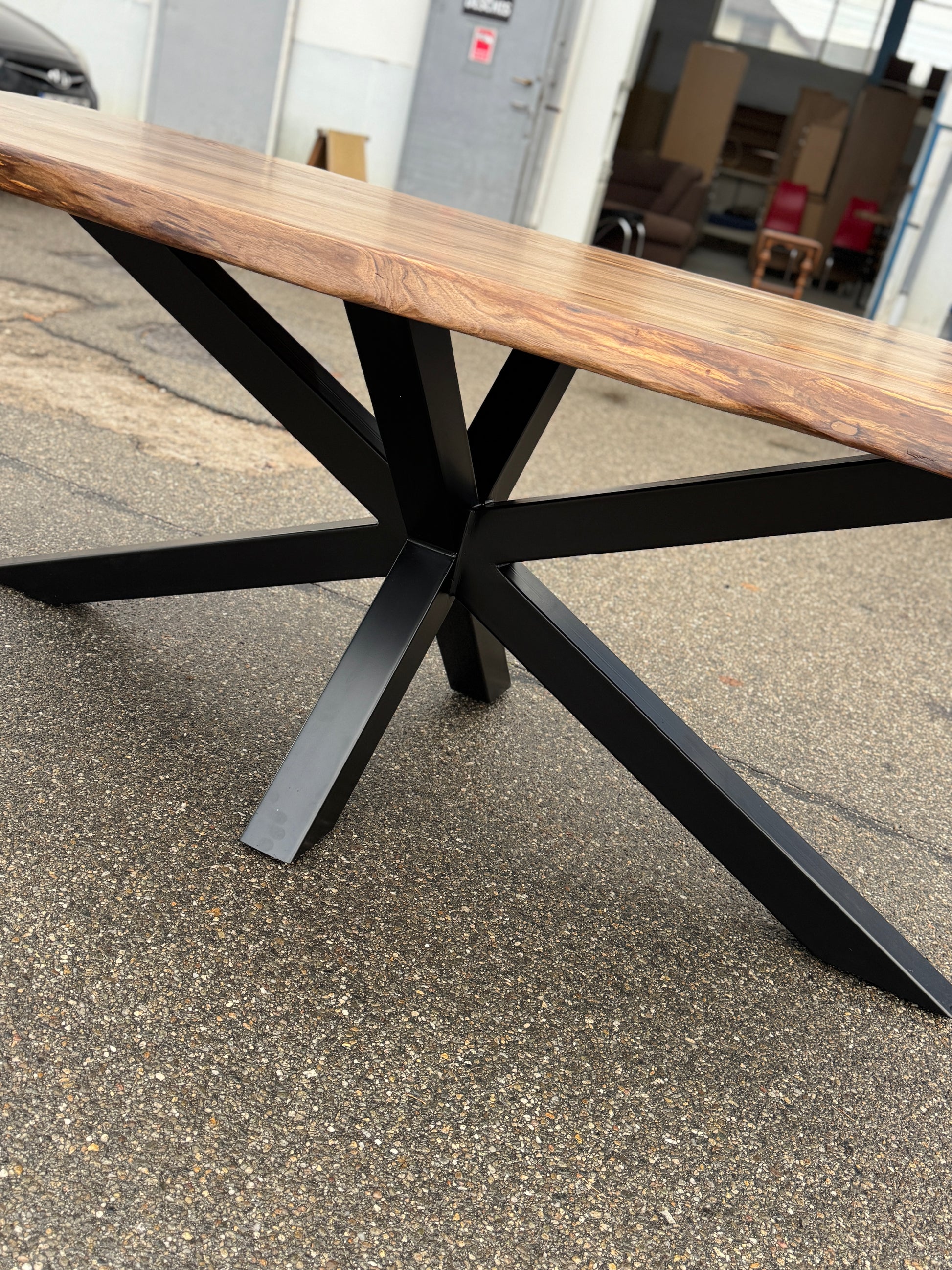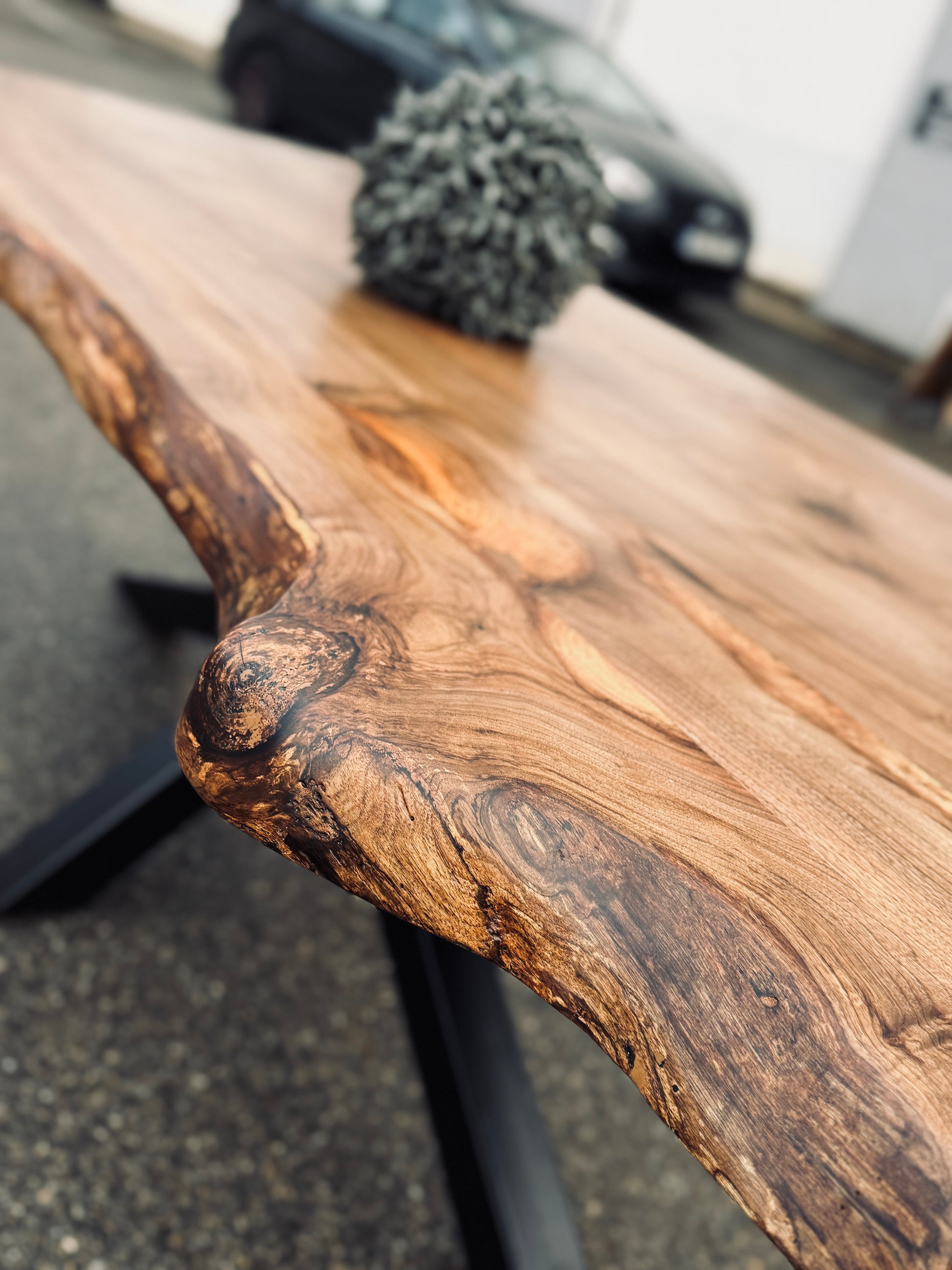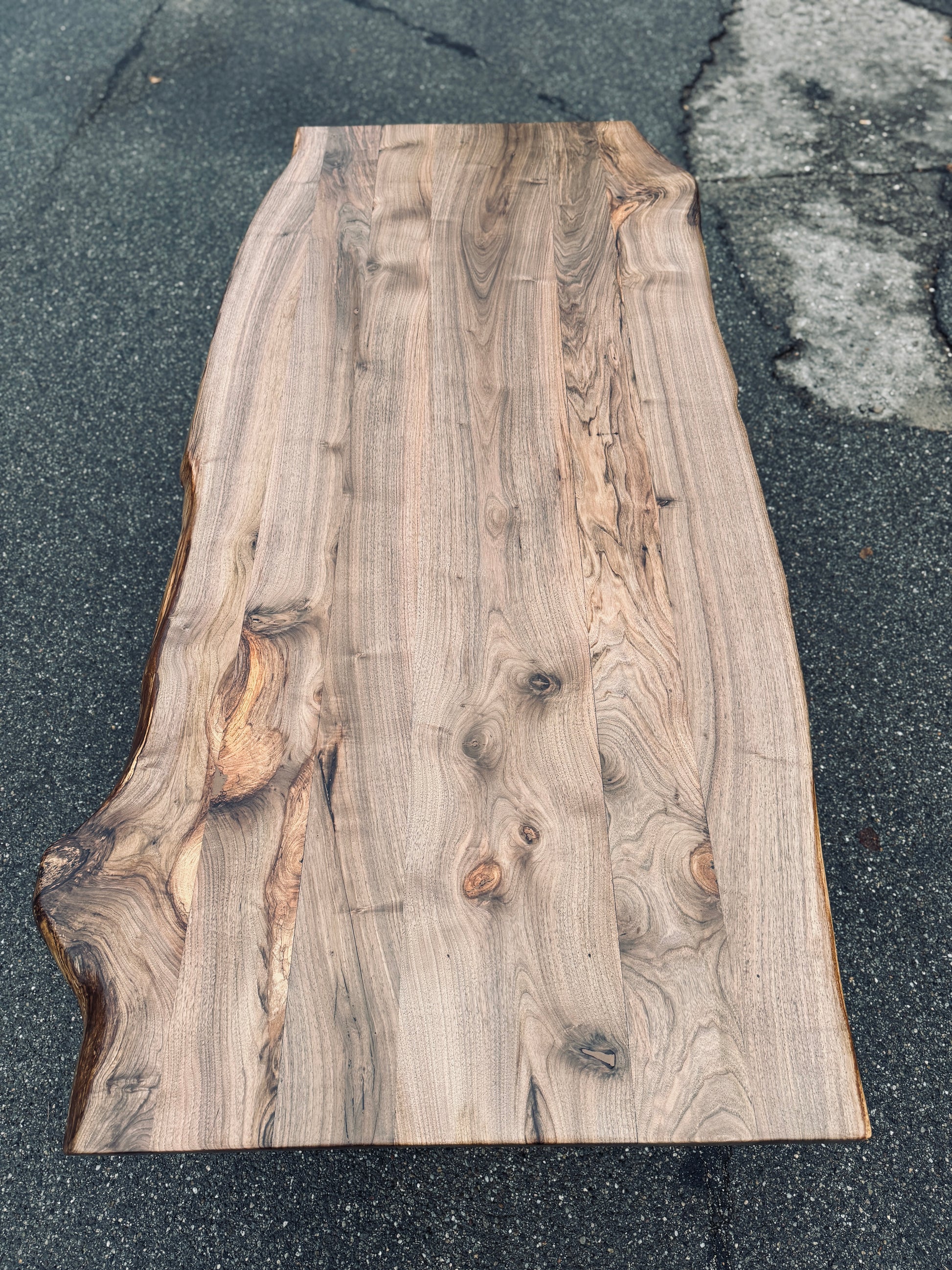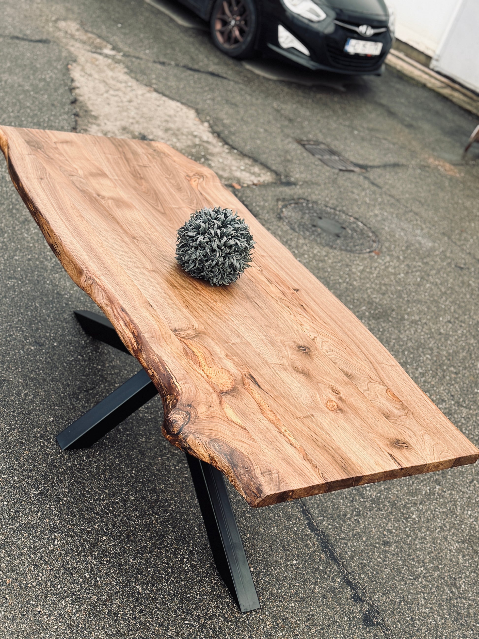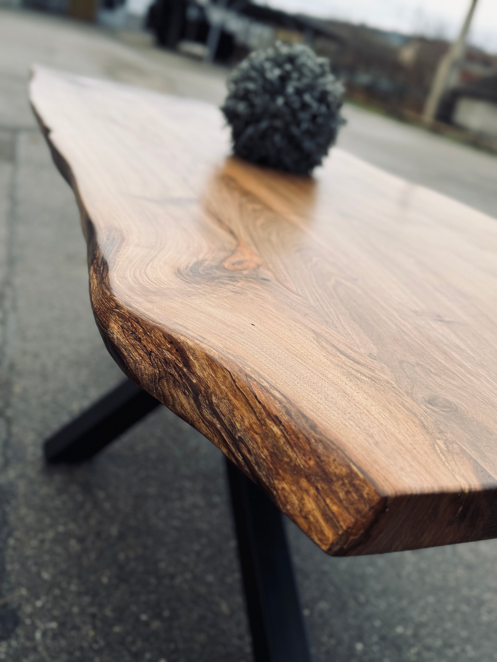 Masa este realizata din lemn de nuc negru lamela continua , 5cm grosime .